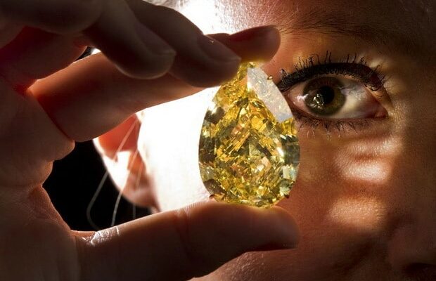 Участники аукциона Sotheby’s в Женеве стали свидетелями исторического момента. Желтый бриллиант «Солнечная капля», гигантский среди драгоценных камней